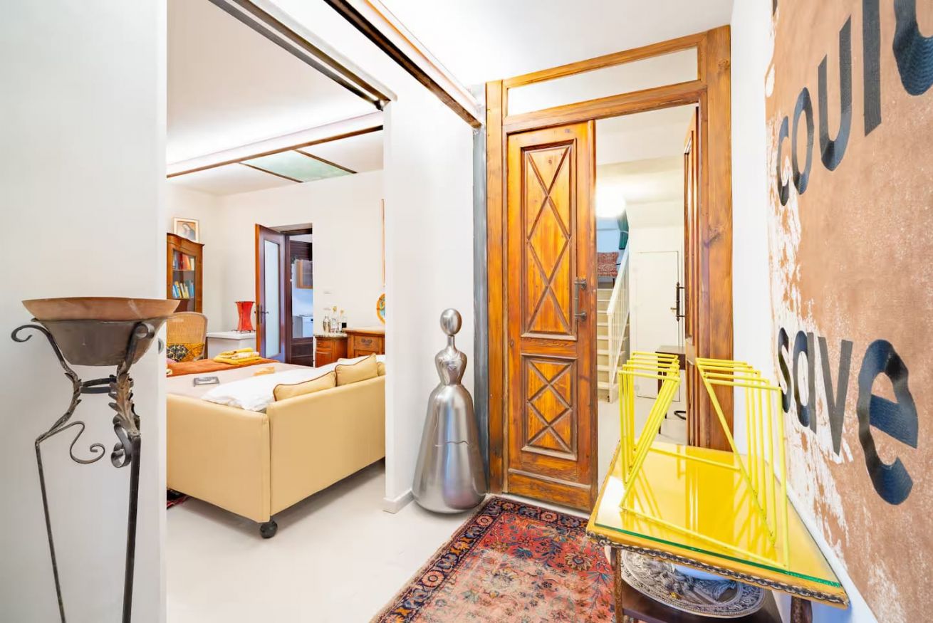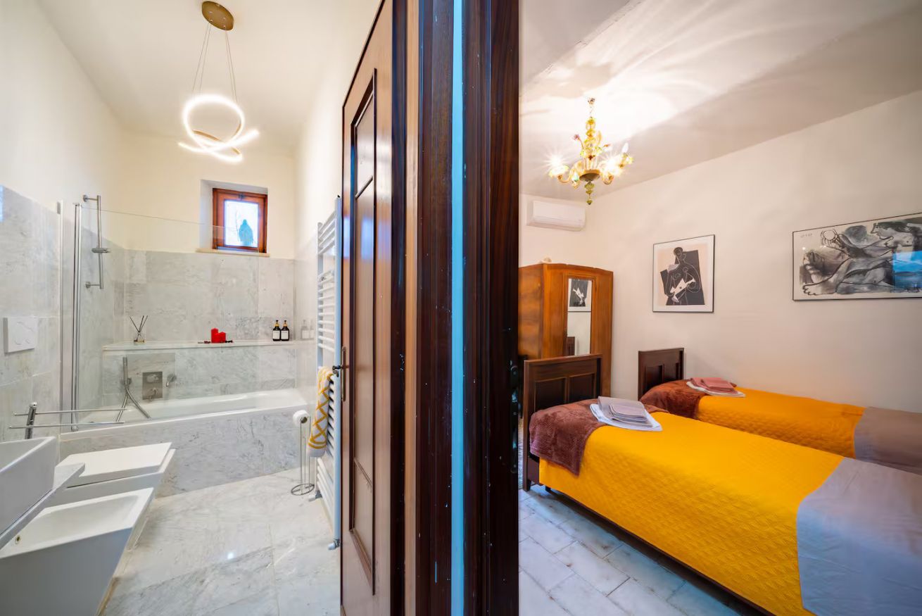 4 camere da letto al piano superiore per 8 persone con due bagni completi; 2 delle camere da letto possono essere dotate di bagno privato o condiviso, a seconda delle preferenze degli ospiti. La camera da letto con biblioteca al piano inferiore può ospitare 4 persone con 2 divani letto in pelle di altissima qualità realizzati su misura. La suite della biblioteca si trova al piano terra e dispone di un bagno che può essere utilizzato in modo privato o condiviso. La suite della biblioteca è un appartamento separato con una seconda cucina completa, camino e lavatrice. Presenta porte di collegamento in modo che gli ospiti possano scegliere di essere aperti alla casa principale o rimanere privati, come desiderano. Dispone di due ingressi separati. È presente anche una vasta collezione d'arte di qualità museale e un parco di sculture, meraviglioso da visitare, con opere di numerosi artisti tra cui Dennis Oppenheim, Carolee Schneemann, Andres Serrano, Ida Applebroog e Faith Ringgold.