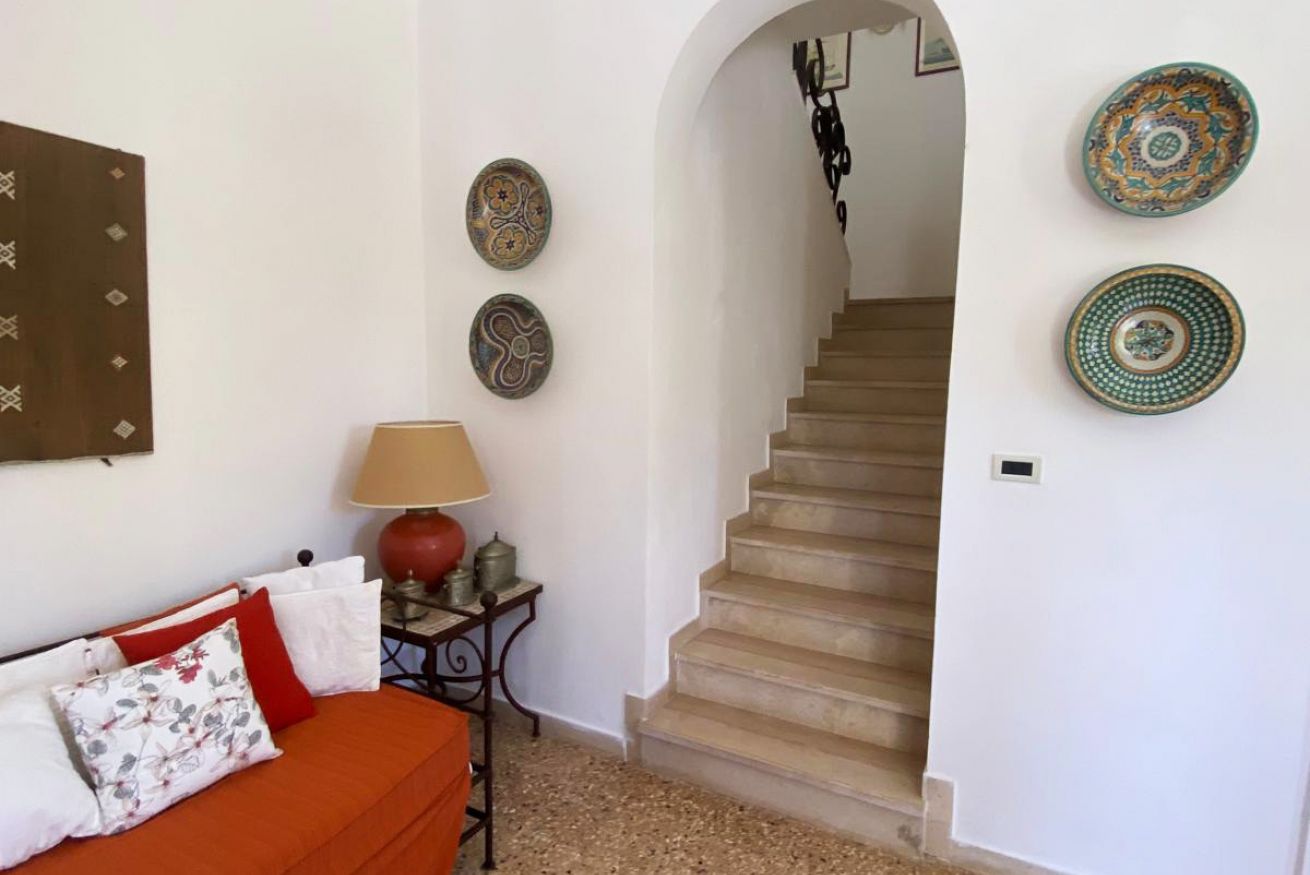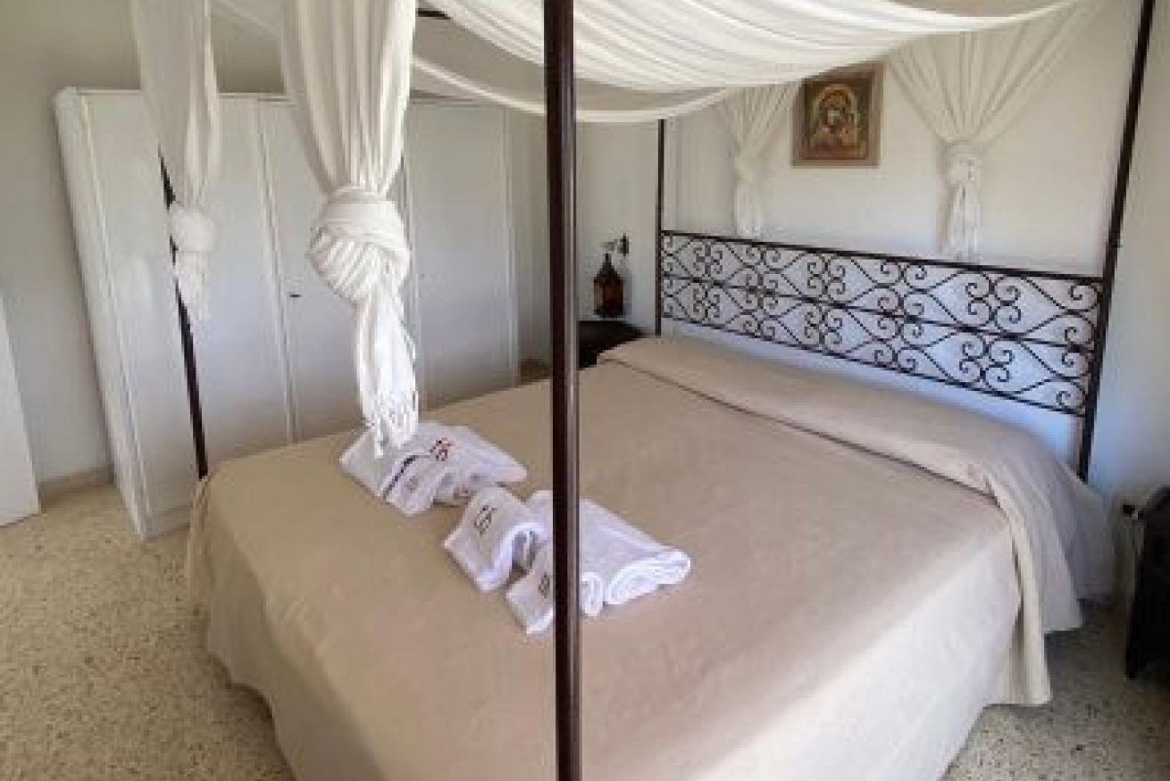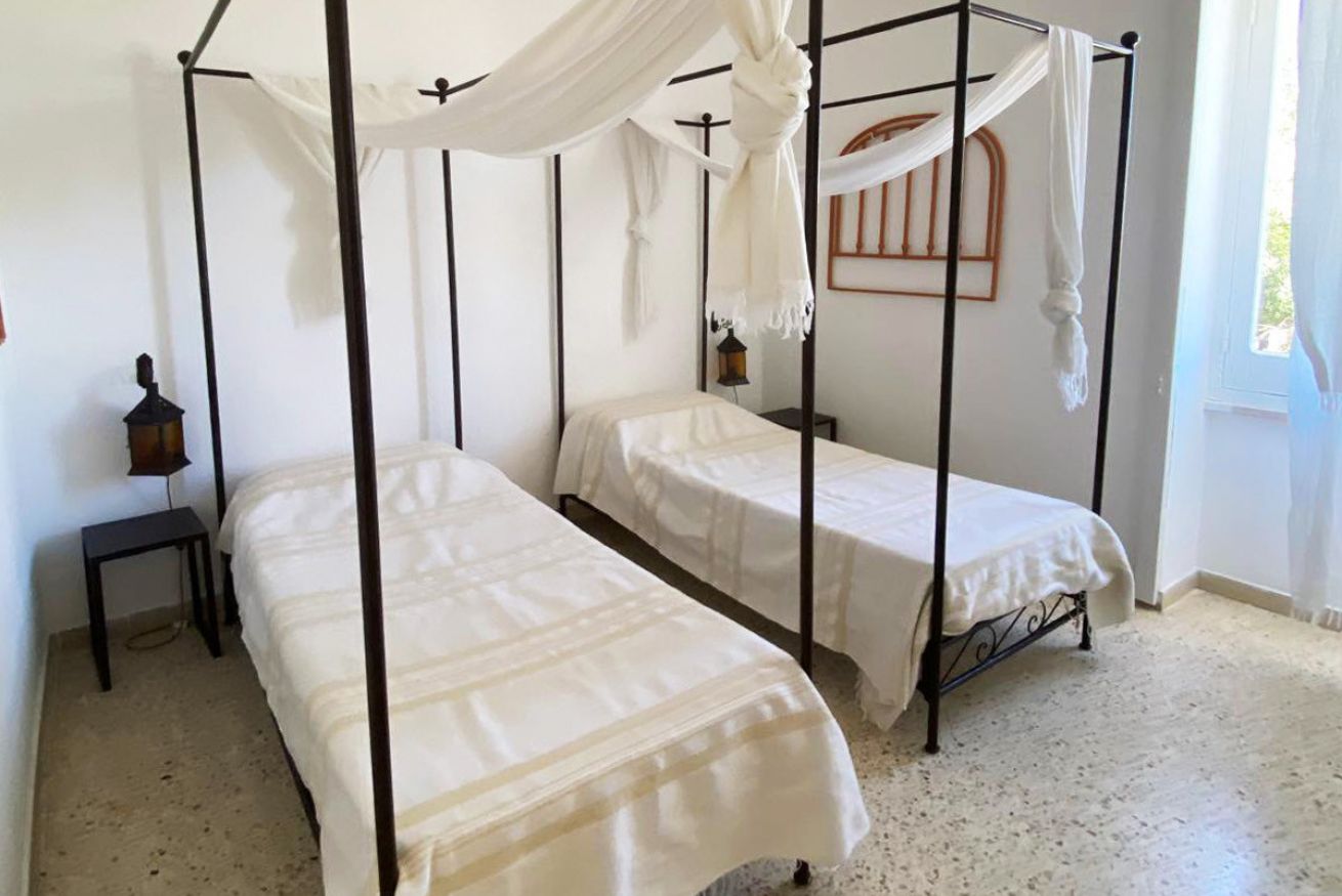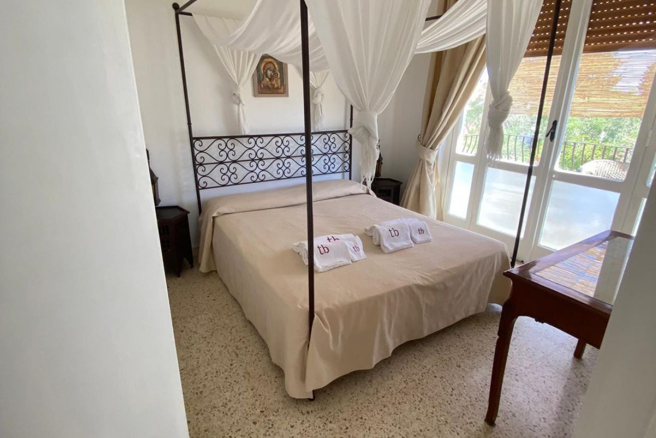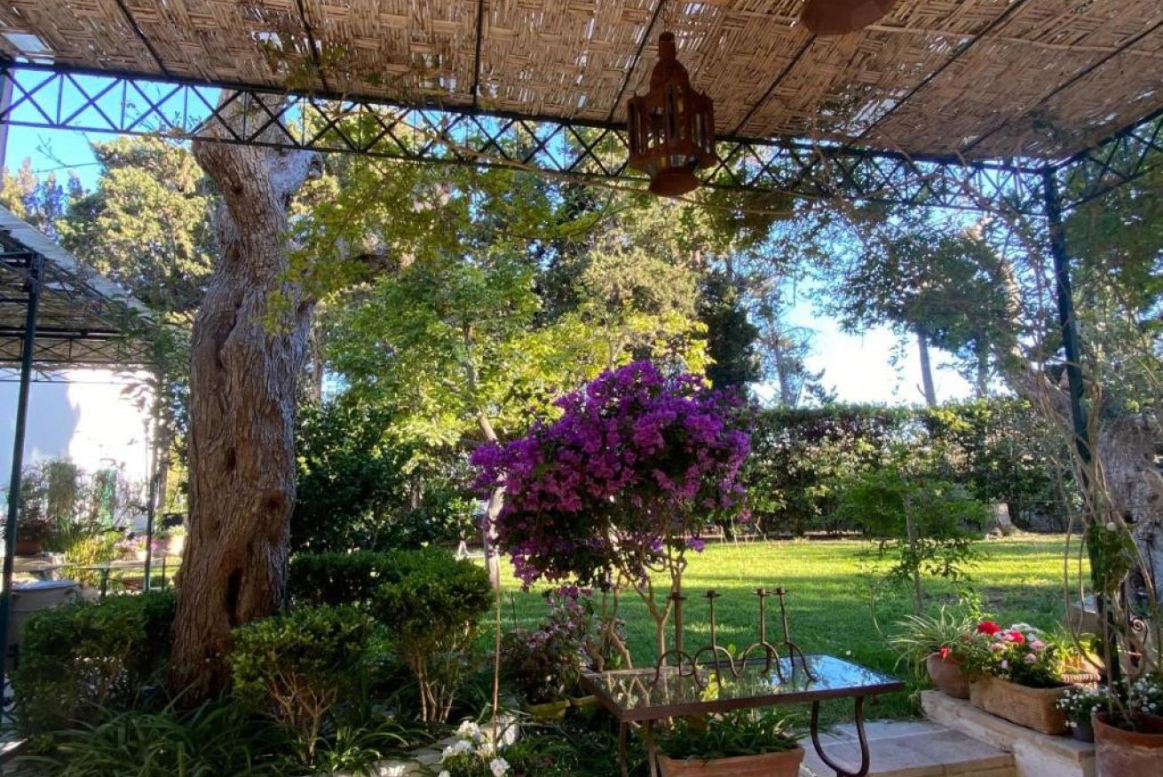 Spaziosa e confortevole camera ampia 34 mq al primo piano della Casina di Summa, antica dimora agricola settecentesca, trasformata negli anni dai proprietari in una comoda e raffinata residenza estiva, immersa nel verde, con ingresso indipendente, è arredata con cura nei dettagli, con mobili antichi, con due bagni ognuno con doccia, un letto matrimoniale, un comodo divano letto, un funzionale angolo cottura con piastre ad induzione, forno, frigorifero e bollitore, con aria condizionata e Wi-Fi gratuito, e TV. Uscendo dalla camera e salendo un gradino si gode di un terrazzo con vista sul parco e su Otranto, con un gazebo arredato con poltrone e tavolini.